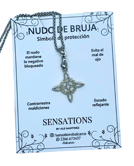 Un nudo de bruja es un amuleto protector que está formado por dos poderosos símbolos entrelazados. El primero de ellos es el círculo, el símbolo universal de la vida, el universo y las cosas eternas, y el nudo de cuatro esquinas. Este último es gaélico y representa las cuatro estaciones, a los cuatro dioses de las estaciones celtas, a los cuatro puntos cardinales y a los cuatro elementos (tierra, fuego, agua y aire), entre otras cosas. Además, como dato interesante, el nudo de cuatro esquinas se puede dibujar sin levantar el lápiz del papel.