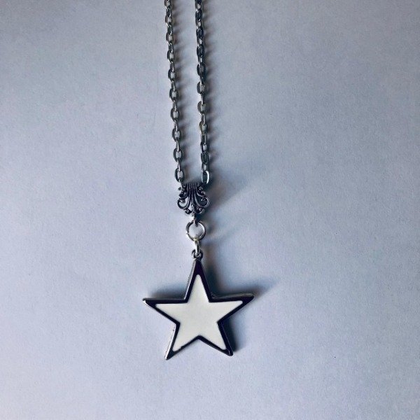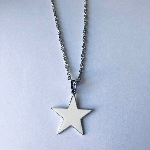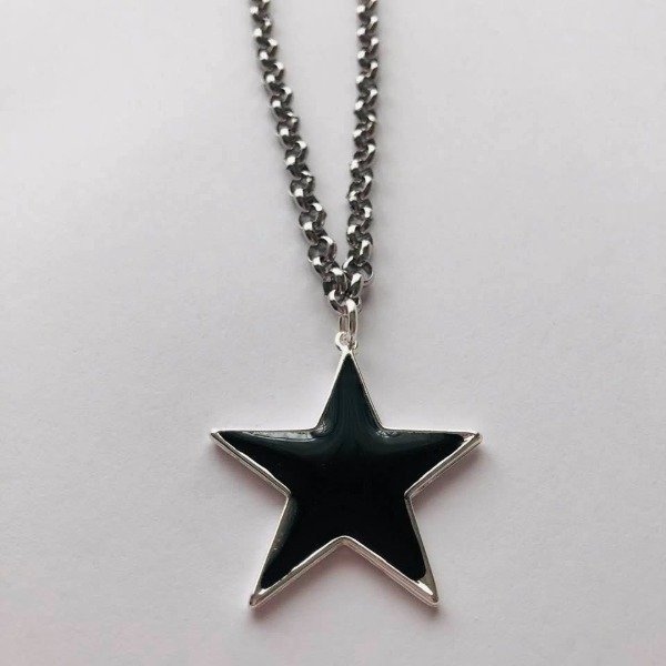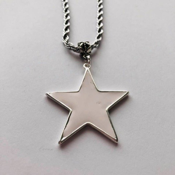 Cadena de acero quirúrgico y dije bañado en plata de 40 mm con motivo de estrella.