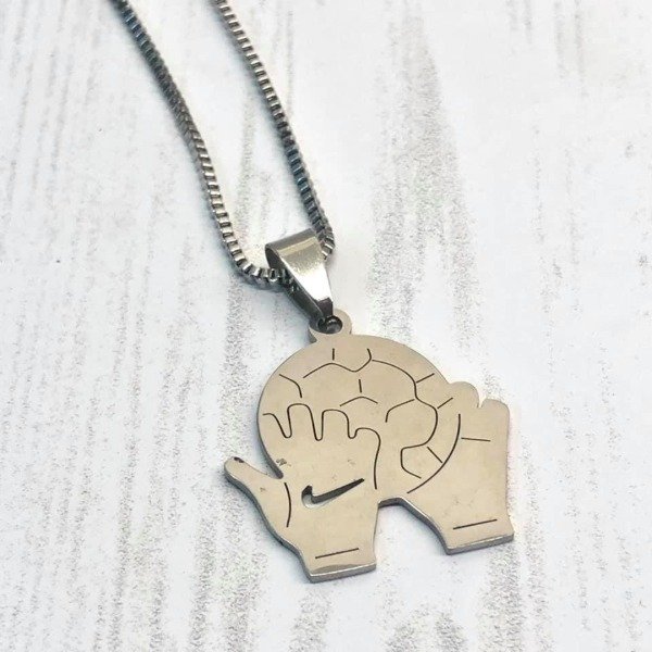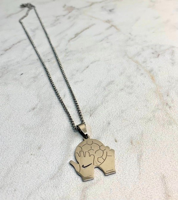 Cadena y dije Arquero Fútbol (guantes y pelota) 2,3 cm. Todo en acero quirúrgico.