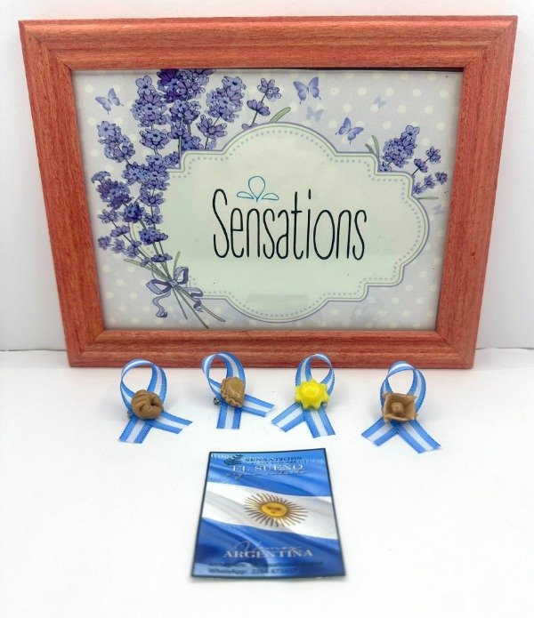 Escarapelas artesanales de porcelana fría, modeladas y pintadas a mano, una por una, con dedicación y amor por los detalles.