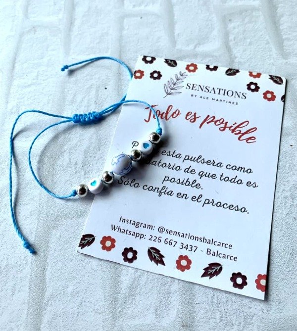 Pulsera Todo es posible celeste