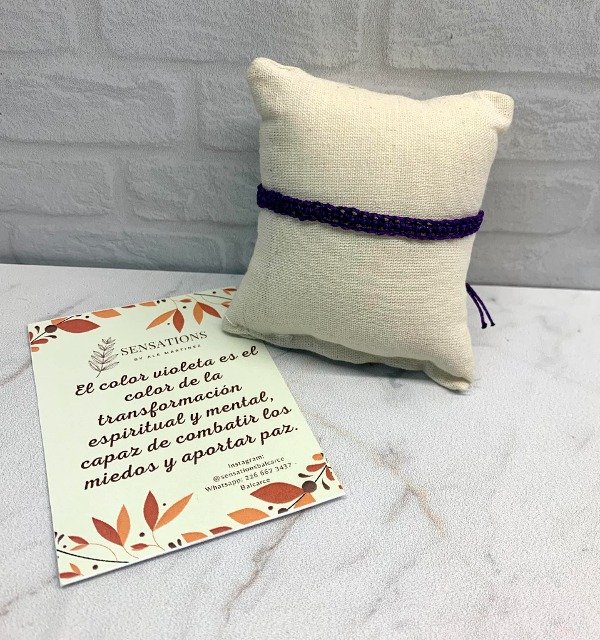 La pulsera violeta colocada en tu mano izquierda representa una garantía para tu subconsciente para darte justo equilibrio energético en tu cuerpo, así como transmutar toda energía negativa y encontrar una espiritualidad mística. También te ayuda encontrar la solución a problemas de todo tipo.