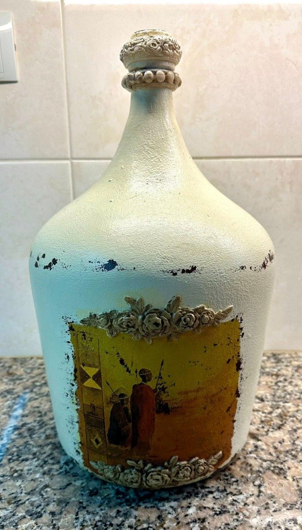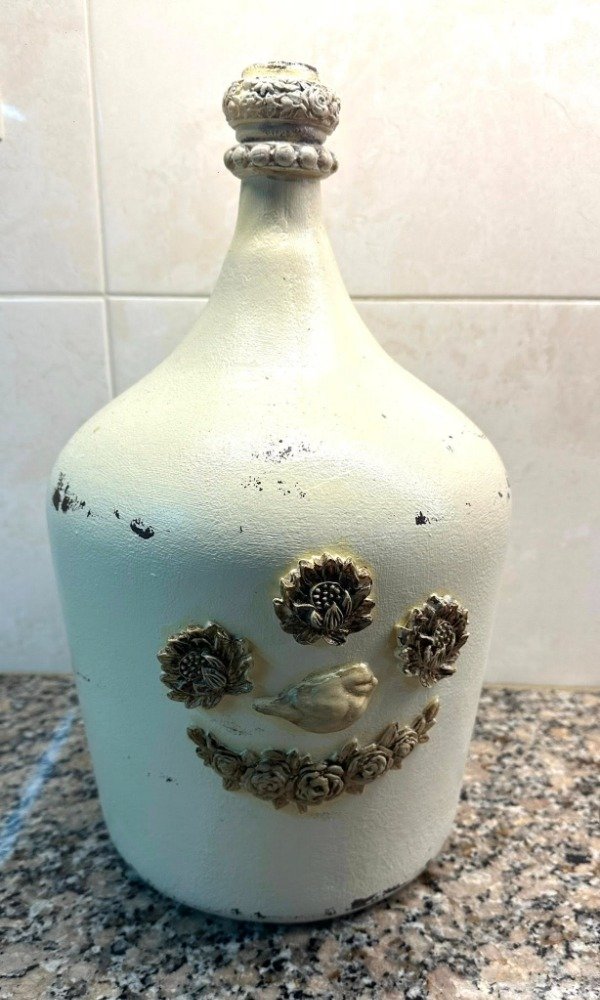 Transforma cualquier rincón de tu hogar con esta damajuana única, intervenida y pintada artesanalmente por mí. Cada detalle refleja un estilo vintage y elegante, ideal para decoración, centro de mesa o para darle un toque especial a tus espacios